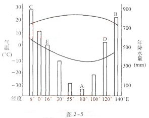 【解题指要】 本题考查气候的相关知识。根据题设,此题考查亚欧大陆的气温、降水等相关知识,结合图中所给的气温、降水的时空分布,分析解答相关问题。